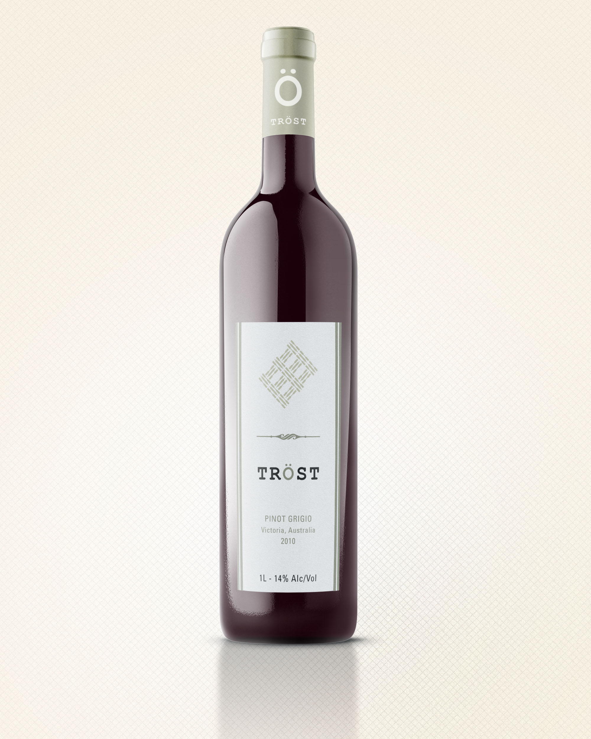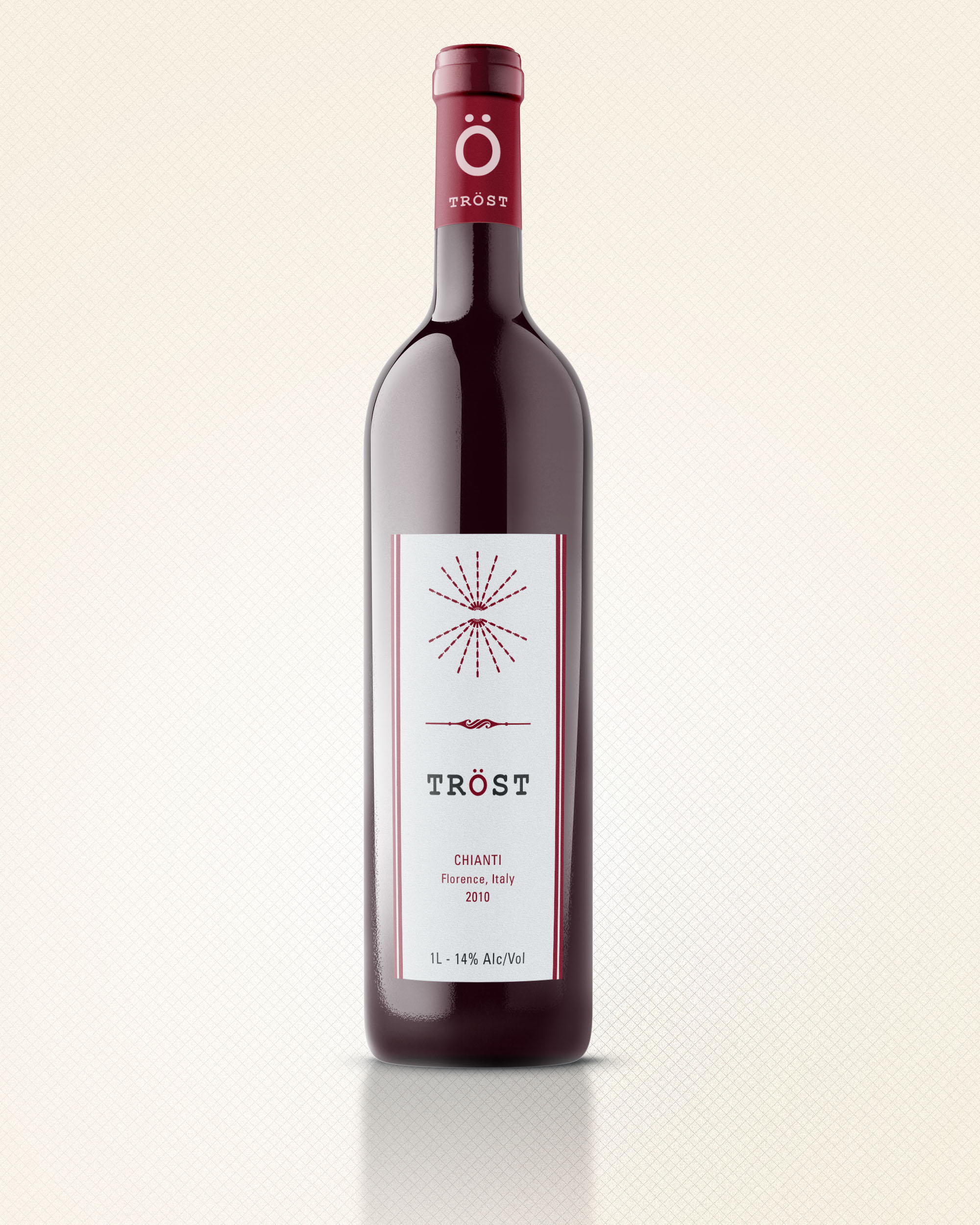 A series of wine bottles designed in a minimal/modern fashion. The idea behind the name of the product, TRÖST, is that when wine gets you drunk, it puts you in a place of solace, which is what TRÖST is (TRÖST is the Swedish word for solace).